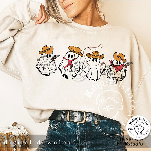 Cowboy Ghosts Png, Halloween Cowgirl Ghosts Png, Howdy Halloween Shirt Png, Ghost Boo Png, Western Cute Ghost Png